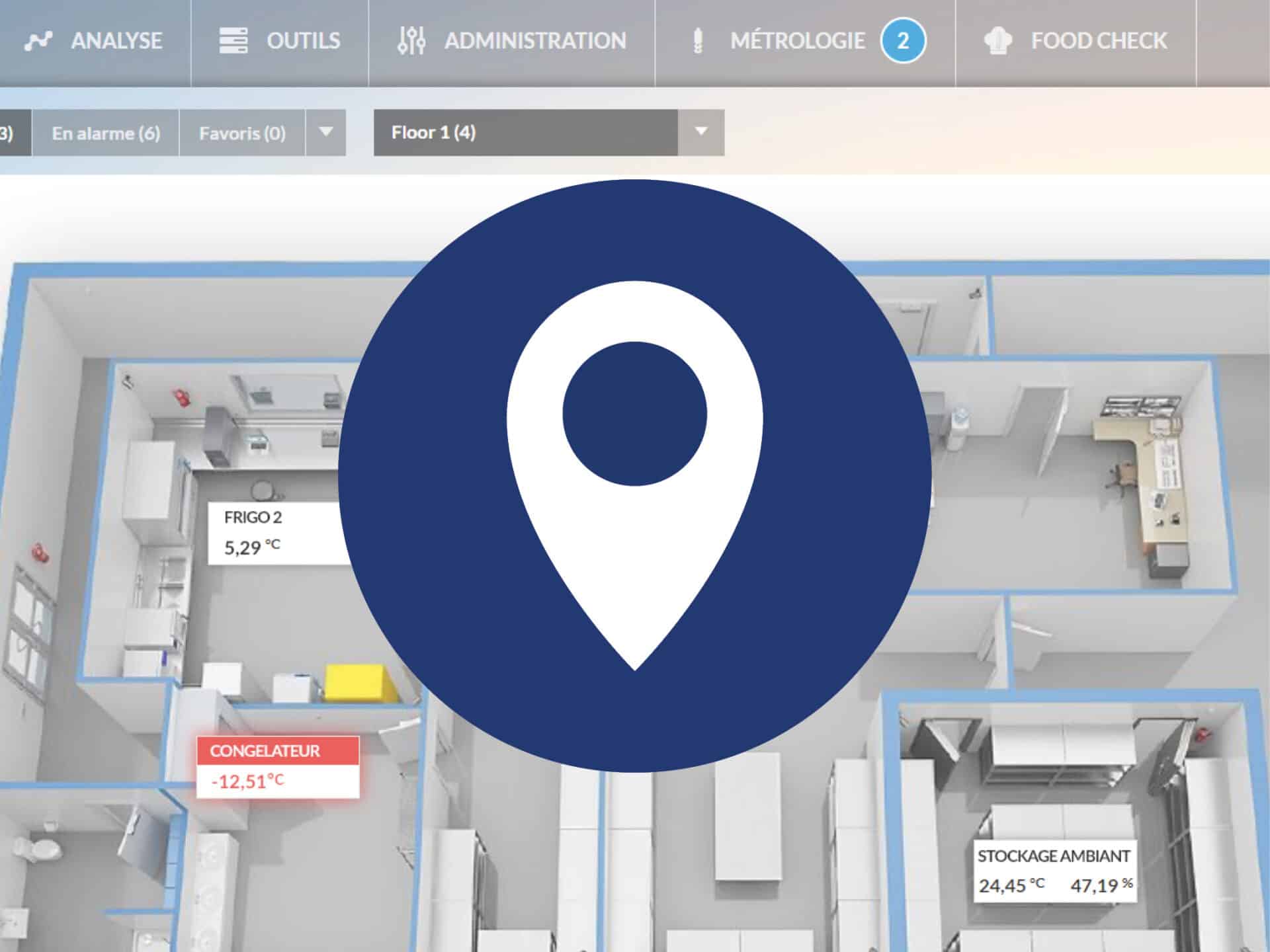 Le module Plans facilite la gestion des équipements pharmaceutiques. Visualisez vos zones de stockage et chambres froides en temps réel pour une surveillance centralisée et des audits de conformité simplifiés.